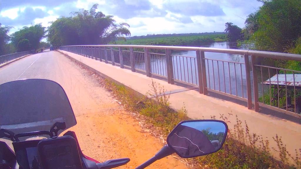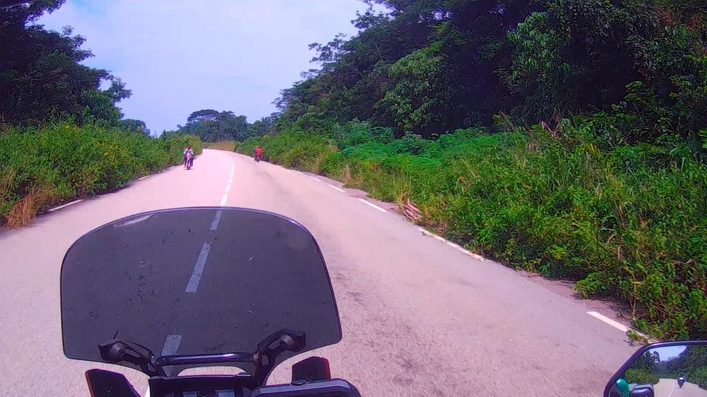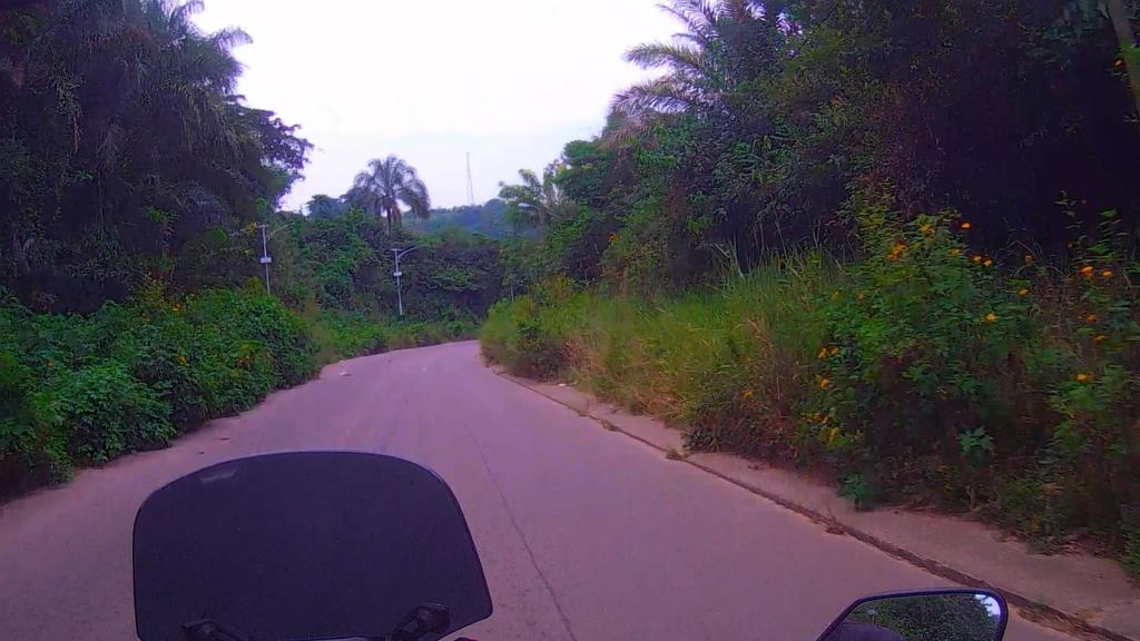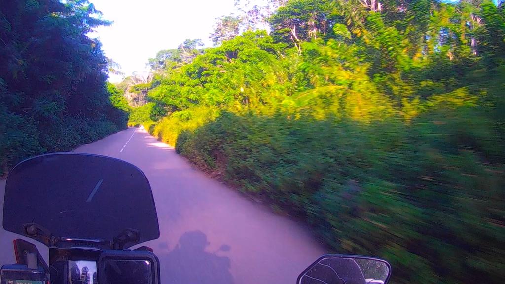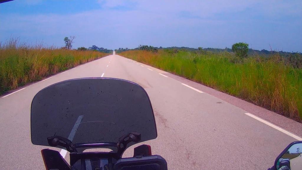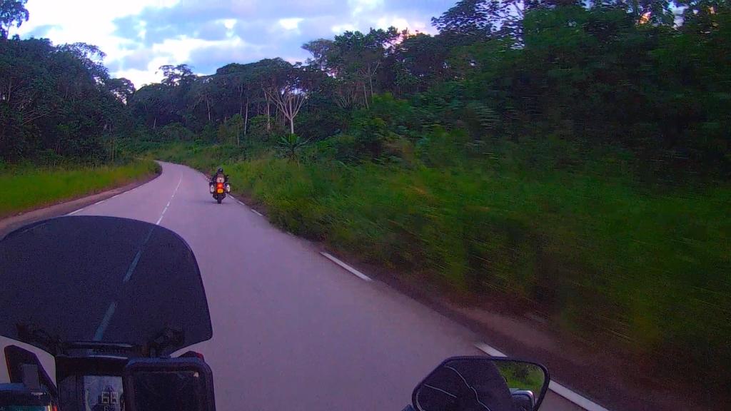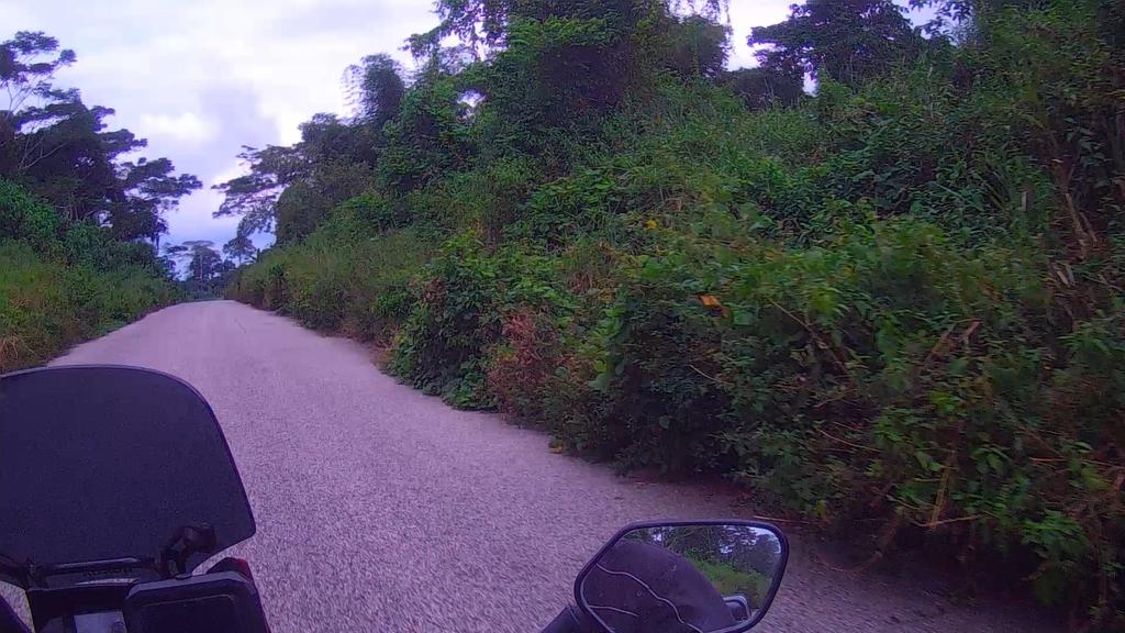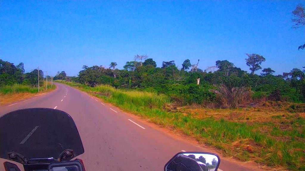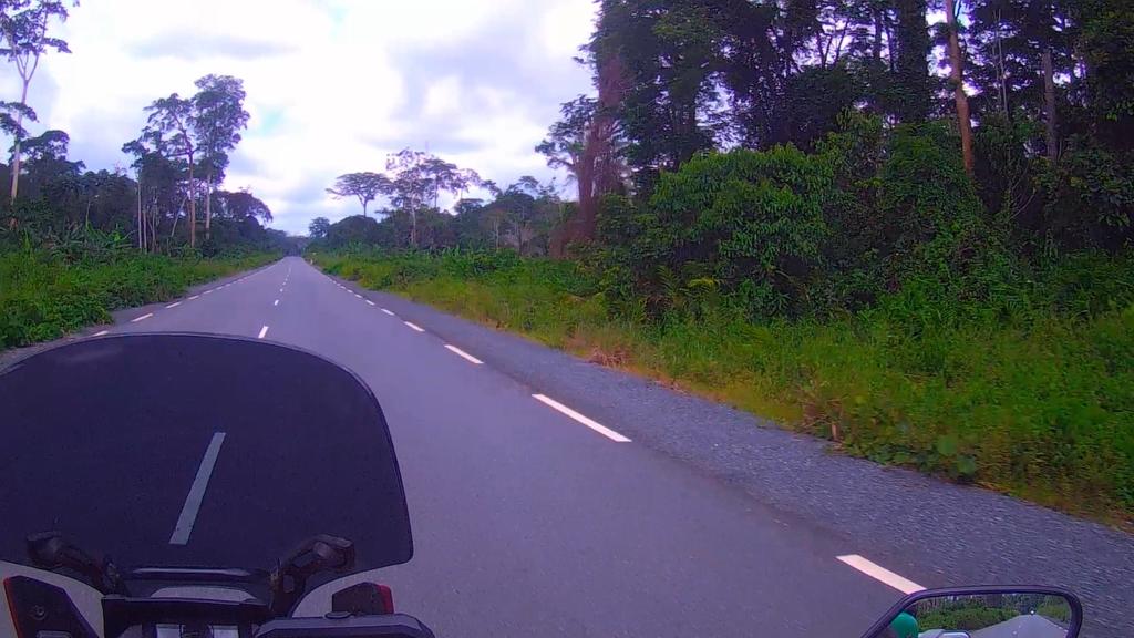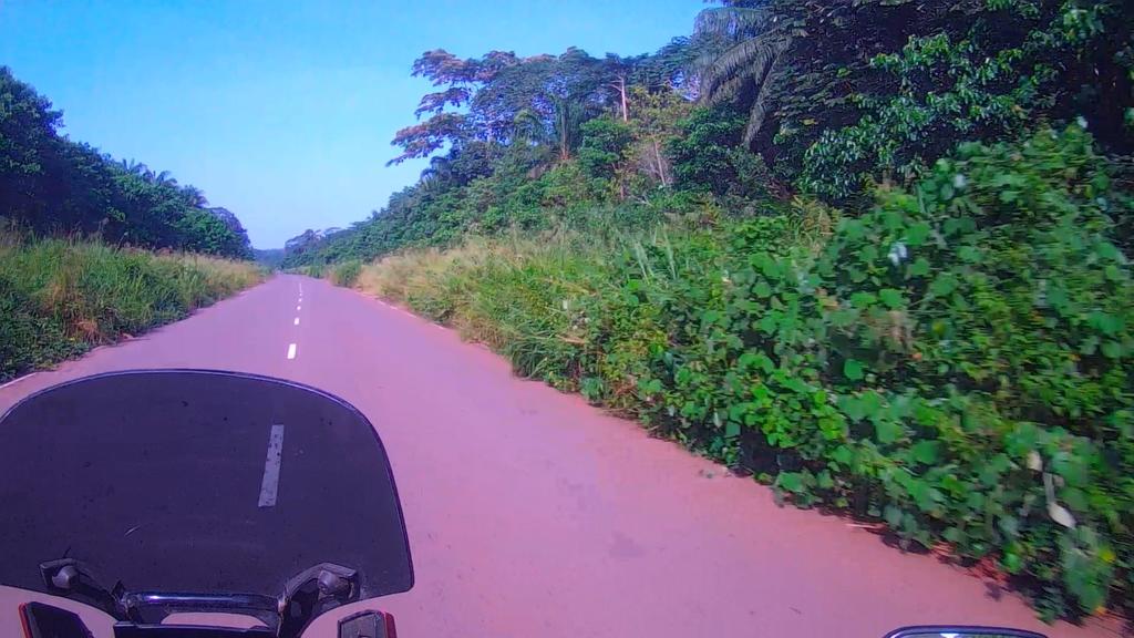 Once out of town and heading West it's fine. It's a Peage but free for bikes. There is a gap in the barriers for bikes so you don't have to wait for the barrier to lift. We made good progress, the scenery is great, the police roadblocks were few and far between and they all waved us through, no long stops checking documents. Again, this was in complete contrast to our police experience in Owando.. The temperature started at 23c rising to 30c, everything you need for a great ride. Towards the Pointe Noire end we came across a section which I'd say is one of the best, if not the best, biking roads I have ever seen, anywhere in the world. Mostly 4 lanes with sweeping bends left and right going on for about 60 miles through the jungle and Dimonika National Park. Africa is full of surprises.