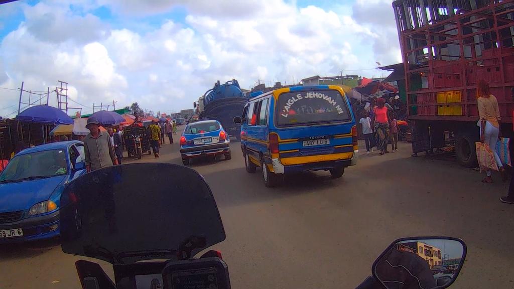 While walking to the network shop I heard a sweet little voice behind us. I turned to see a kid, could be no more than 6 to 8 years old with a bowl of fruit on her head. She was running after us trying to sell fruit. It doesn't matter what you do, you're not going to change the way of life for anybody in Africa but it's so difficult to see and she was so sweet, just trying to sell papaya. After the phone shop we walked back along he same street, looking for her, to give her some money. Initially we couldn't see her but then, there she was, sitting on the kerb with her friend, behind a car, trying to get some shade from a tree. We didn't take the papaya but you'd have to be pretty heartless to be able to walk past them without giving something to help out.