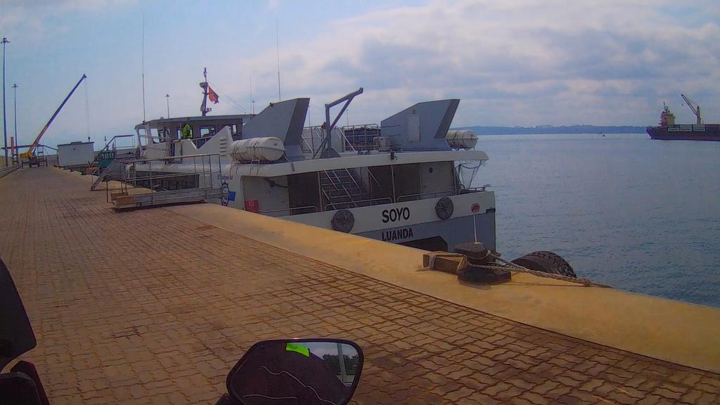 Had to wait a day for the ferry. Hotel had initially said they were full and we could only stay one night so first task was to find accommodation. Some further requests to the hotel meant we could extend our stay for one more night. Next up was to get Angolan insurance for the bikes. We went into town and found the insurance office. Very friendly staff looked at all the paperwork, took copies of everything, typed lots of stuff into the computer, got us to fill in an application form and after some time said they had a price. I was expecting the worst but when they said 25000 Kwanza I thought that was a bit much until I realised she said 2500 Kwanza, which seemed too little but who's to argue. Insurance done it was time to get local sim cards. Easier said than done. The network provider store was full of people. We were ushered to the front desk and told to wait there. An attendant took our passports and we went to the back of the store to wait.......and wait. The attendant did come back with the passports and eventually we had sim cards that didn't work. They assured us they would work in two hours time. We walked back to the hotel. Two hours later, the sim cards still hadn't been activated so we walked back to the shop. They looked it up and said in another two hours the sims would work........ Back at the hotel we waited in anticipation of being back online. Surprisingly the cards did get activated and we had internet again.